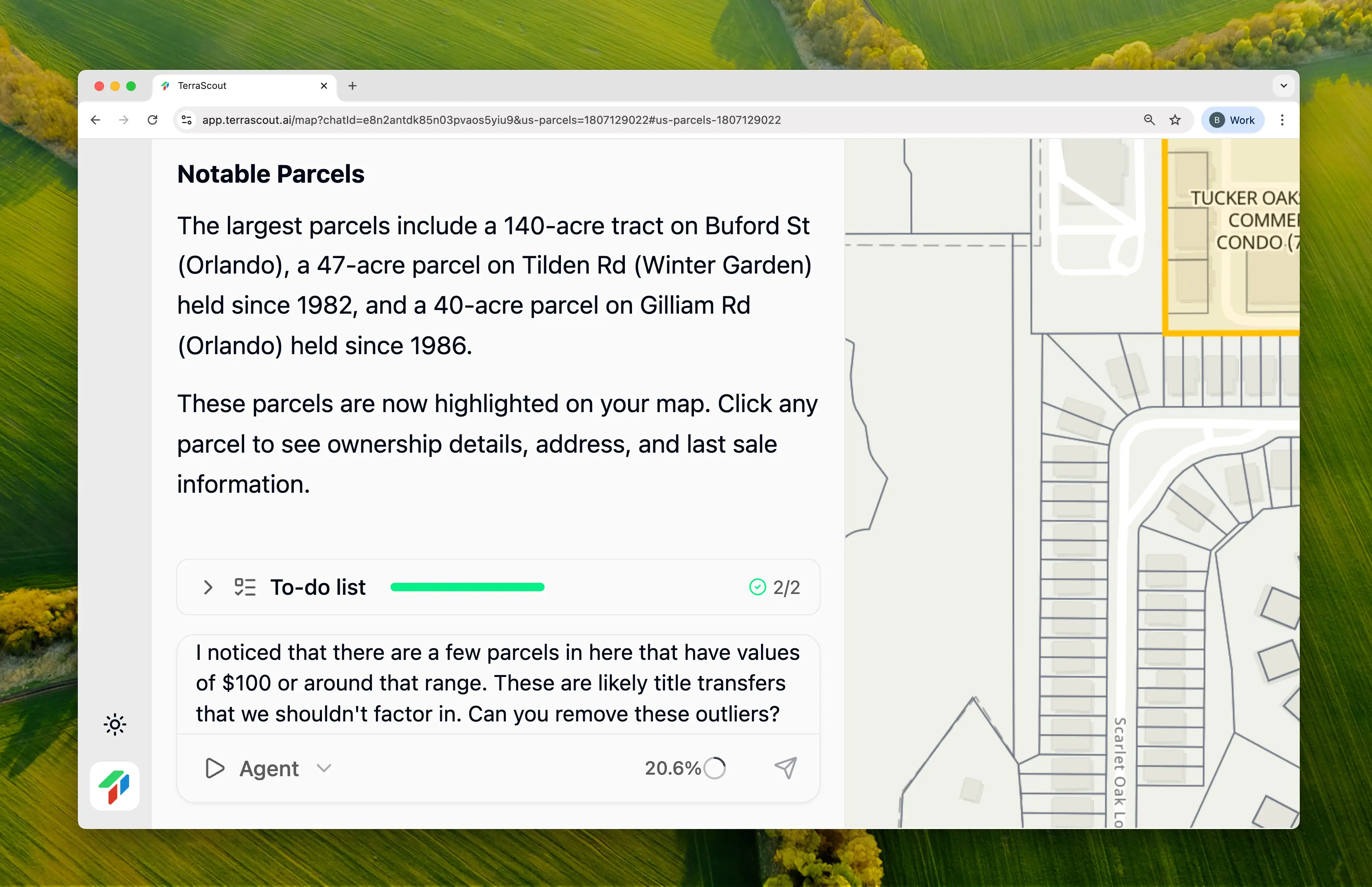 Notice what happened here: we didn’t get perfect results on the first try. The initial search included HOA parcels and data outliers. But instead of starting over with a new query, we had a conversation:- Ploti proactively asked about HOA exclusion