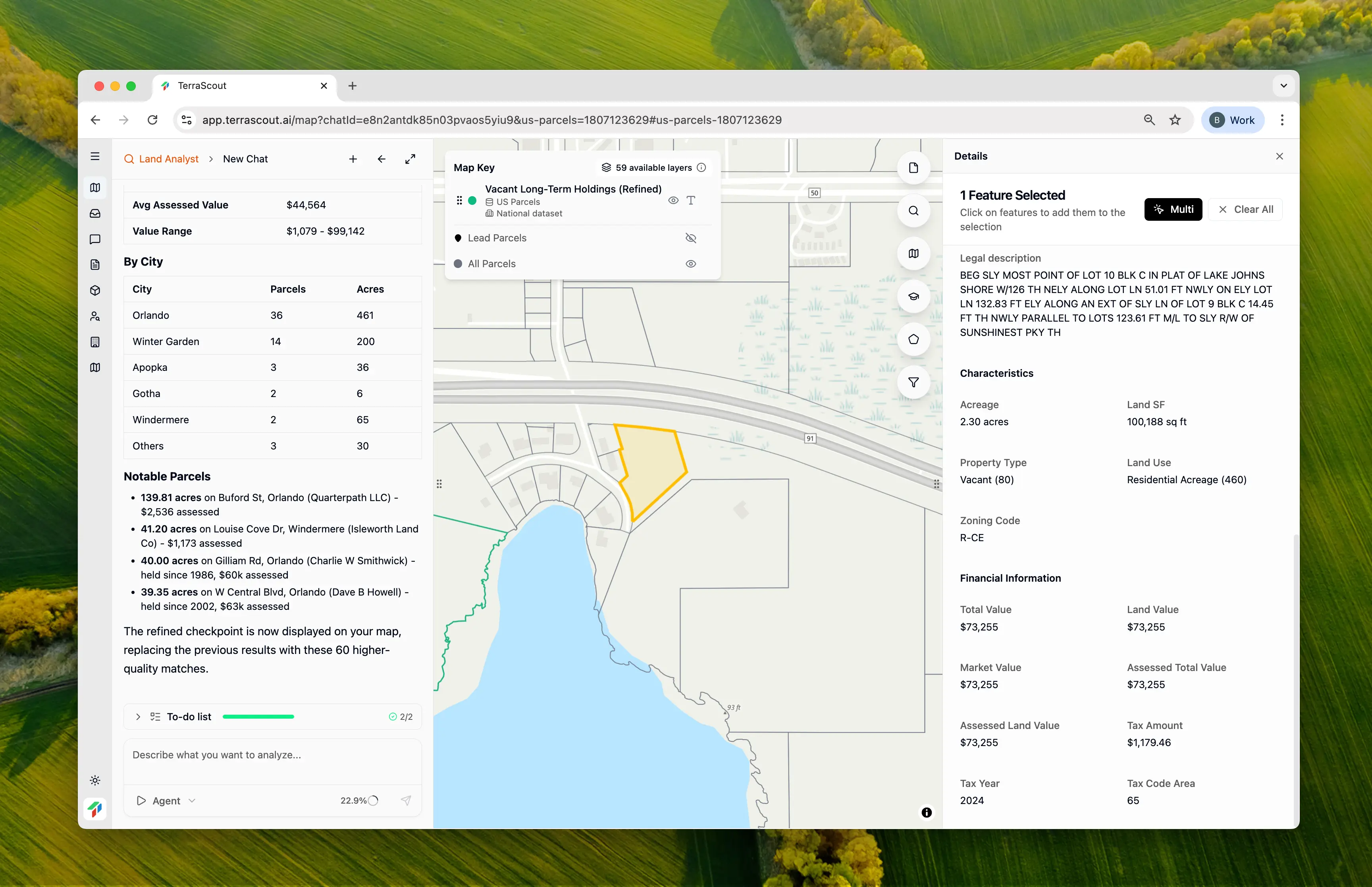 - Filtering for vacant land over 2 acres