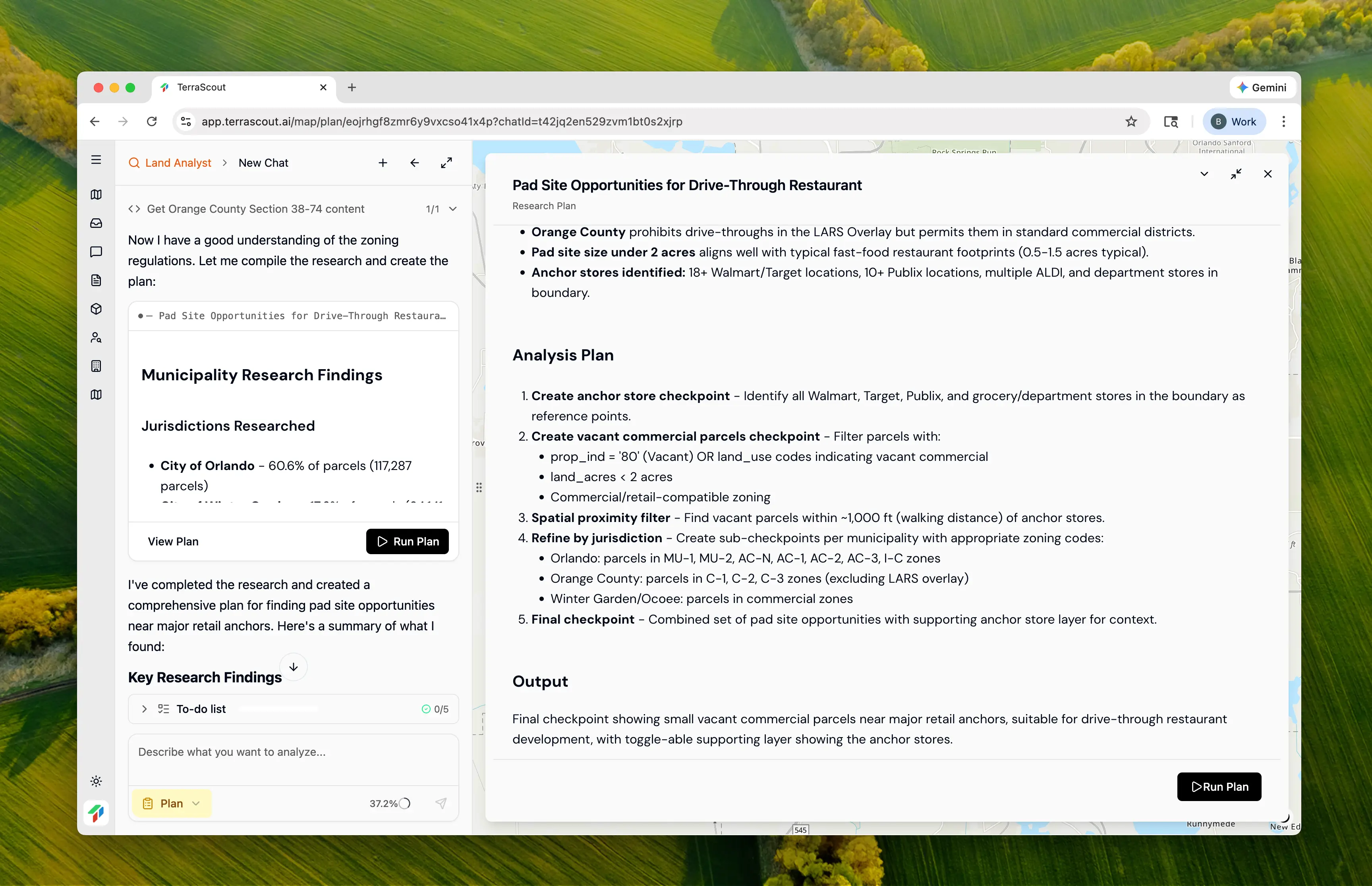 Let’s find pad site opportunities for a drive-through restaurant near Walmart, Target, Publix, and other grocery stores. We need small vacant commercial lots that can support drive-through operations.Step 1: Select Your Search Area