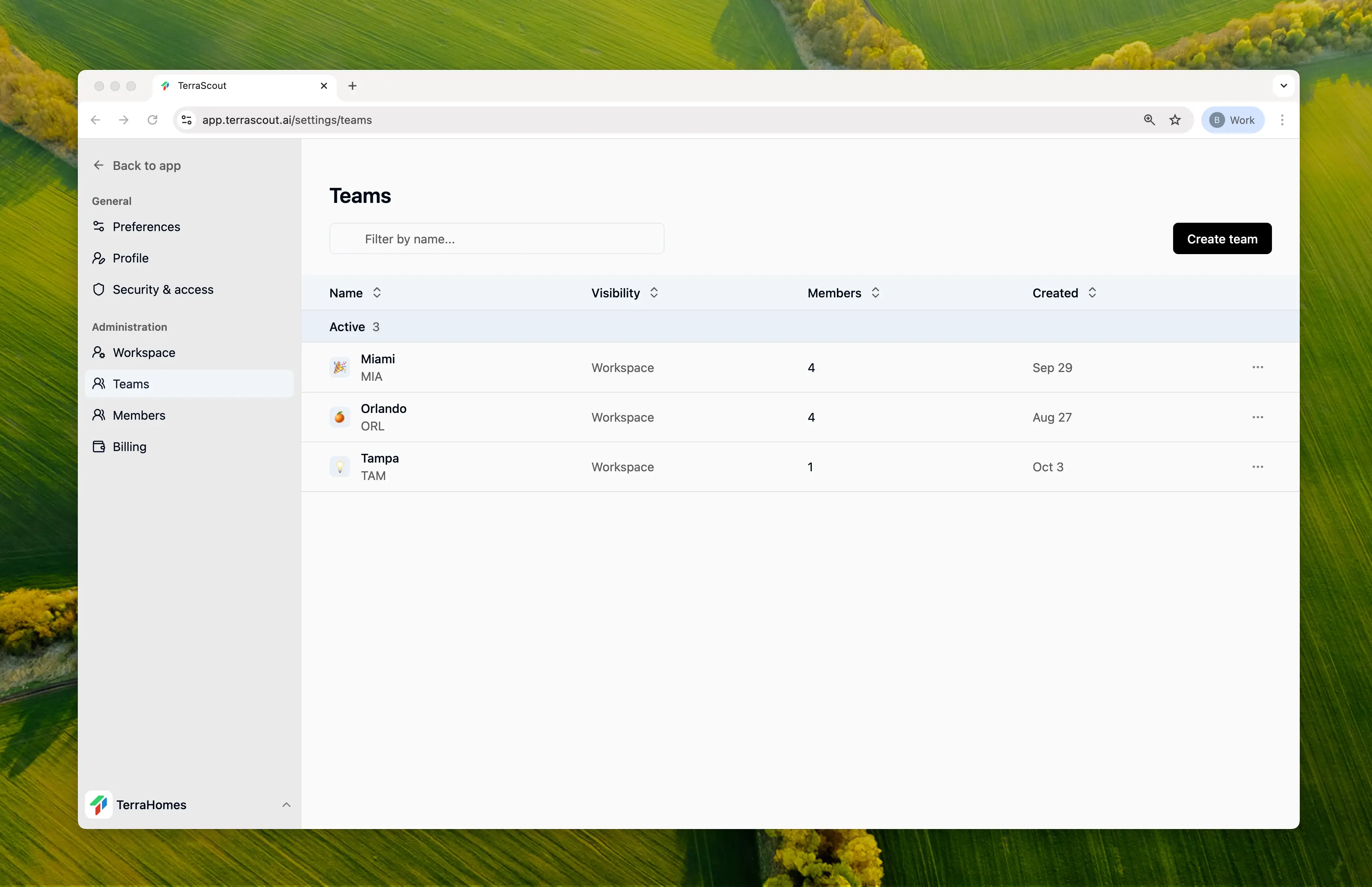 Go to app.terrascout.ai and sign up using either:- Google: One-click sign up with your Google account