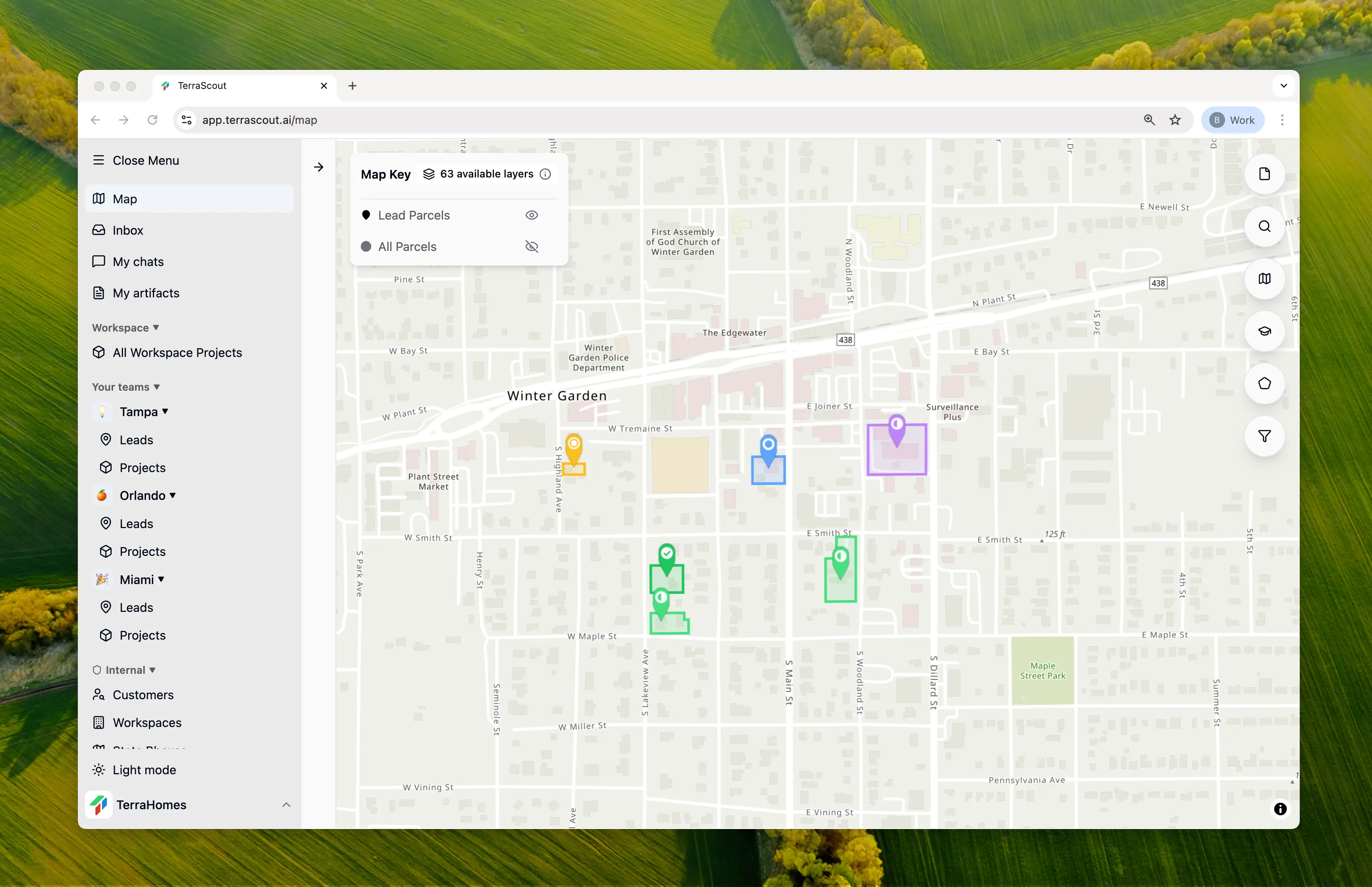 Parcels that are part of a lead are visually indicated on the map, making it easy to see which properties you’re already tracking.