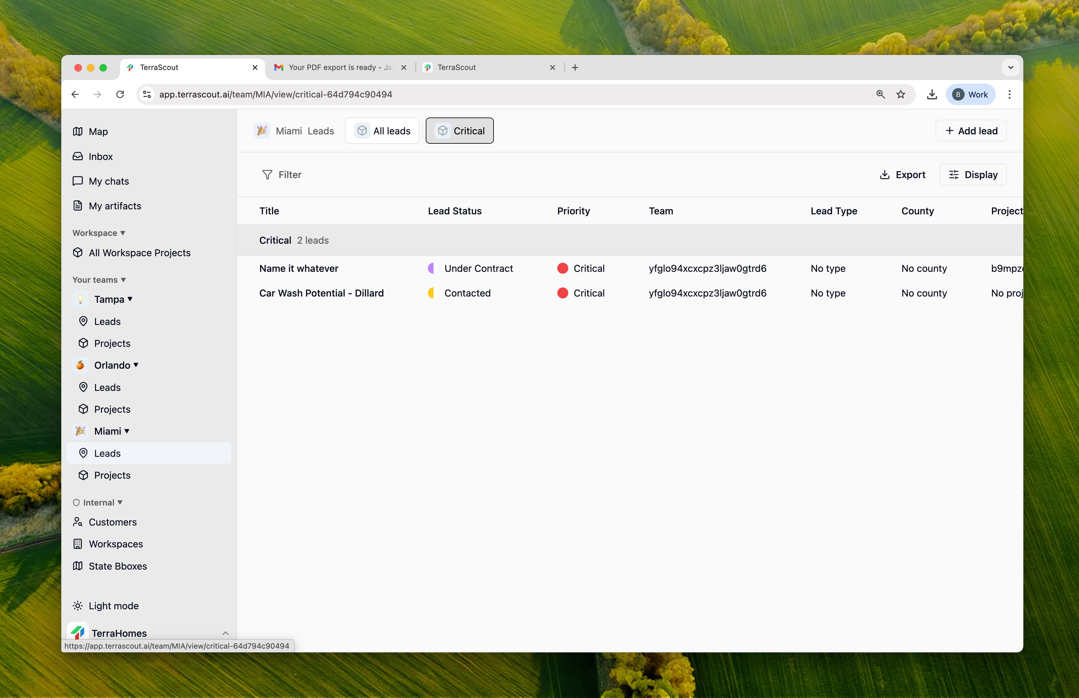 - All Leads - Every lead in your team or project